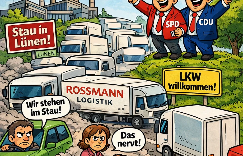 „Lünen darf sein letztes großes Gewerbe-Filetstück nicht für ein verkehrsintensives Logistikprojekt und einen Lkw-Magneten freigeben. Mit einer Rossmann-Ansiedlung würden täglich zusätzlich mehrere Hundert Lkw-Fahrten auf Lünen zukommen. Das würde nicht nur die Stadt und ihre Bevölkerung insgesamt zusätzlich belasten, sondern insbesondere auch die bereits ansässigen Unternehmen und Handwerksbetriebe, die schon heute unter der angespannten Verkehrslage leiden“, erklärt der GFL-Fraktionsvorsitzende Andreas Dahlke.
